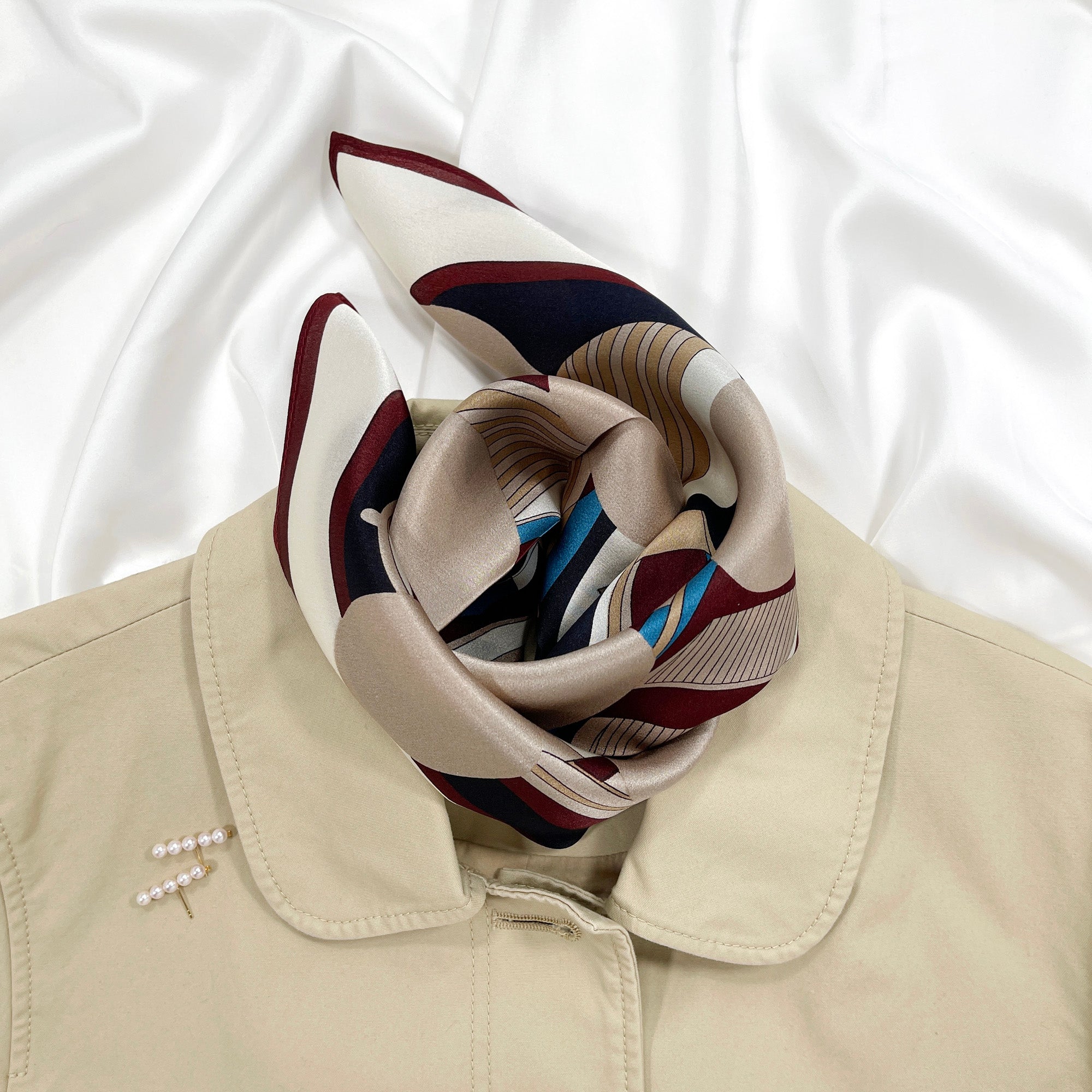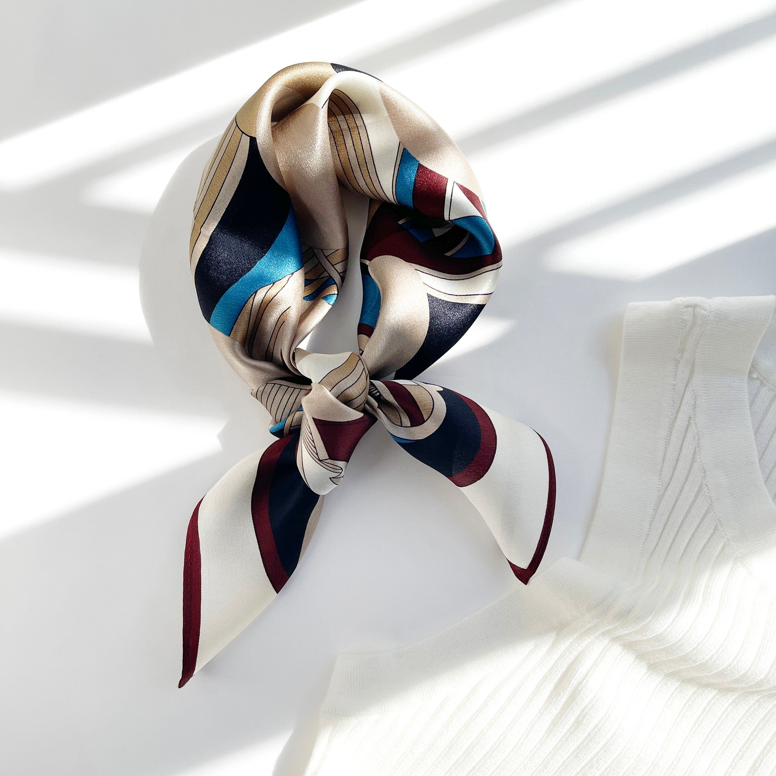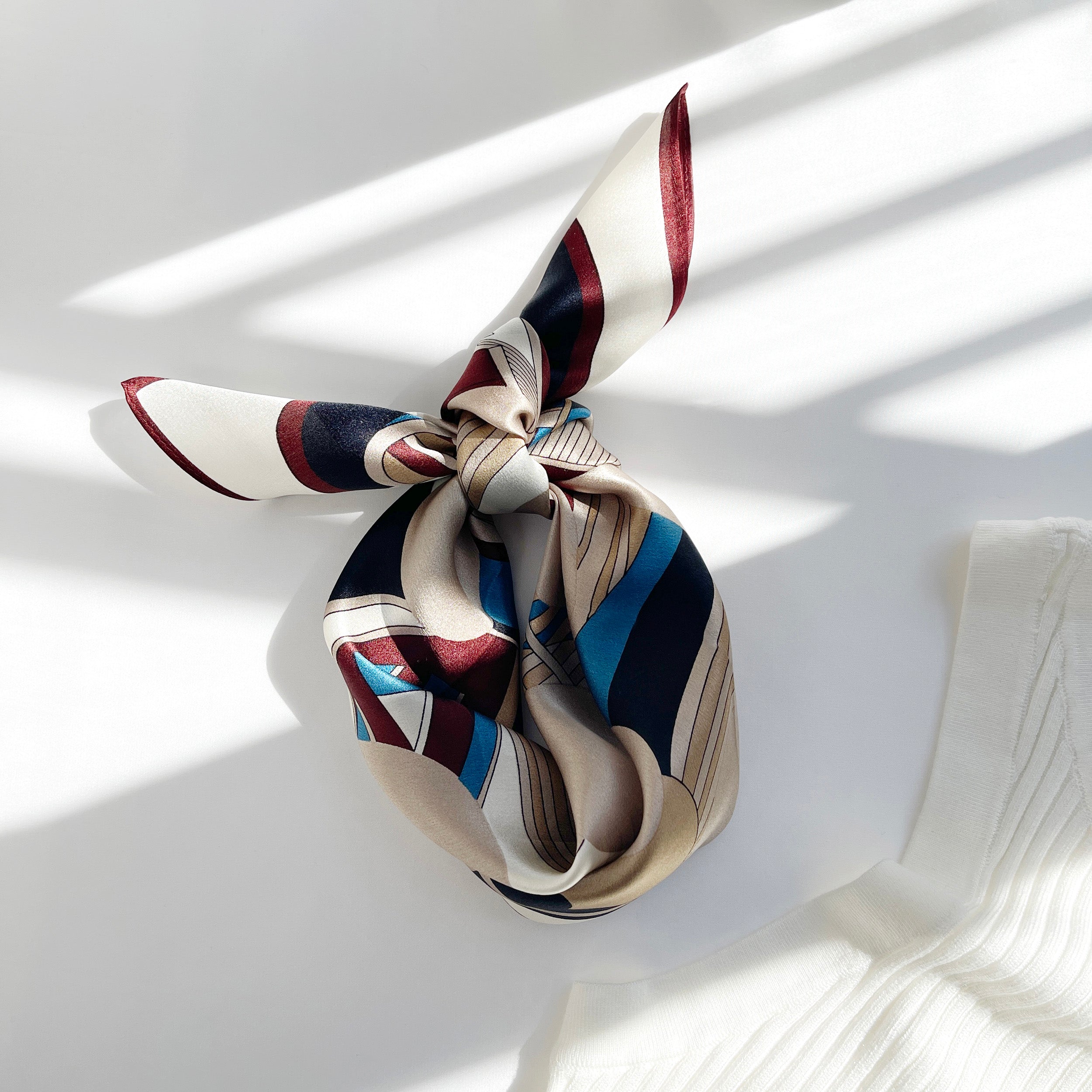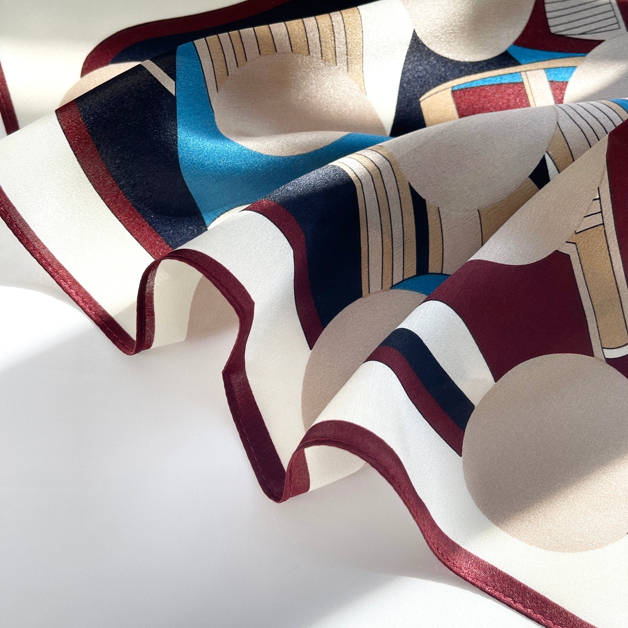 Burgundy Bauhaus Harbor Silk Scarf - 53cm Unisex Bandana