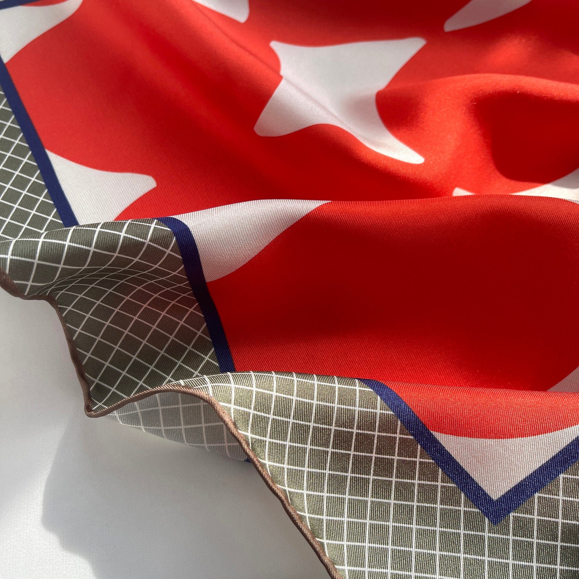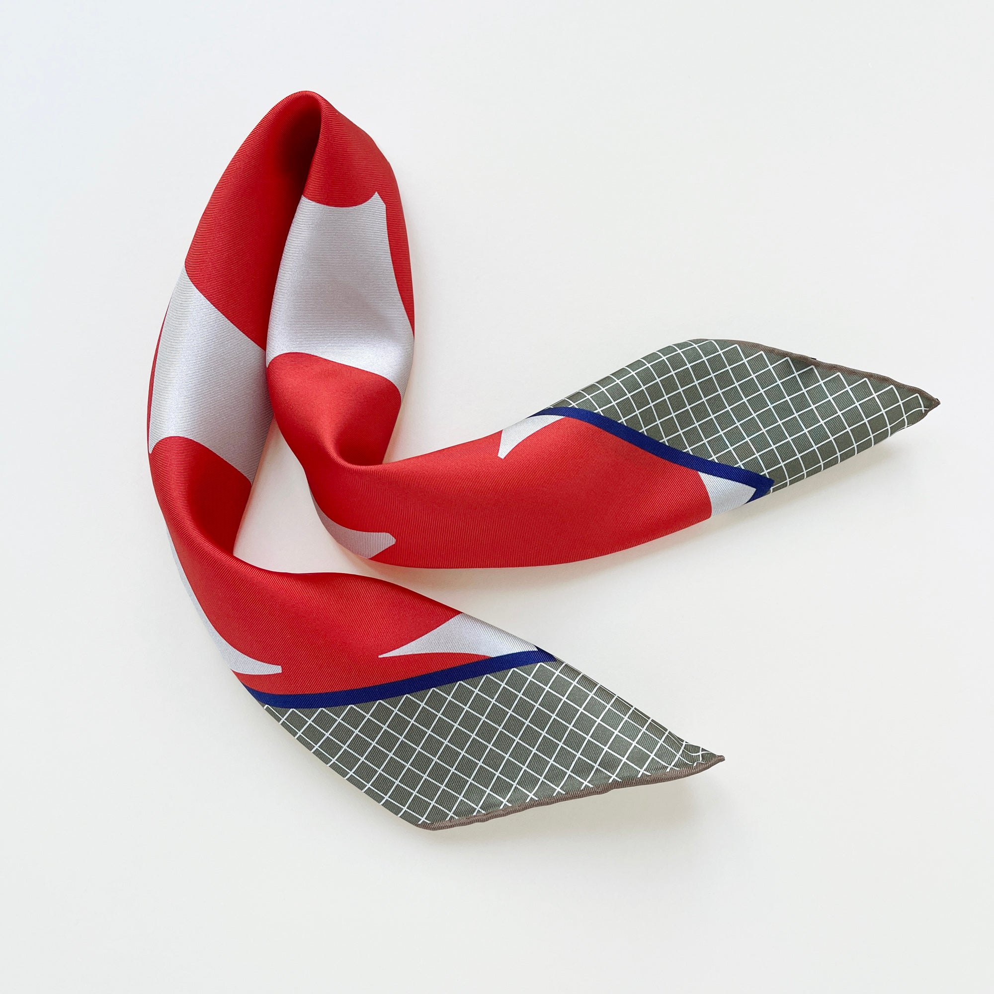 Orangey Red Retro Mod Mosaic Silk Scarf - 53cm Hand-rolled Women's Bandana
