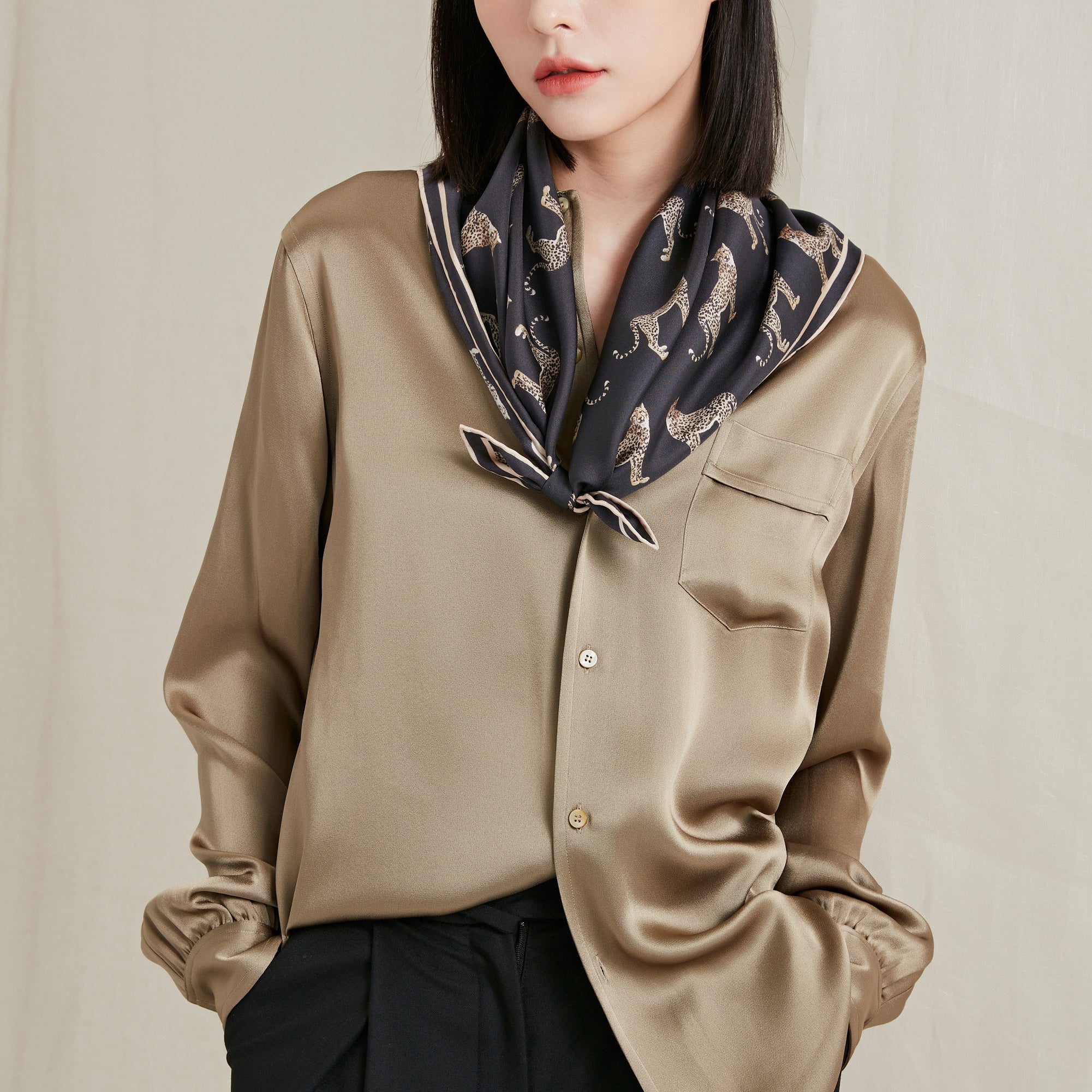 Elevate your style with our leopard print silk scarf, available in pink, sky blue, and black. Crafted from luxurious silk twill with hand-rolled hems, this versatile square scarf adds a pop of colour to any outfit, whether for special occasions or everyday wear - a timeless accessory that blends craftsmanship with style.