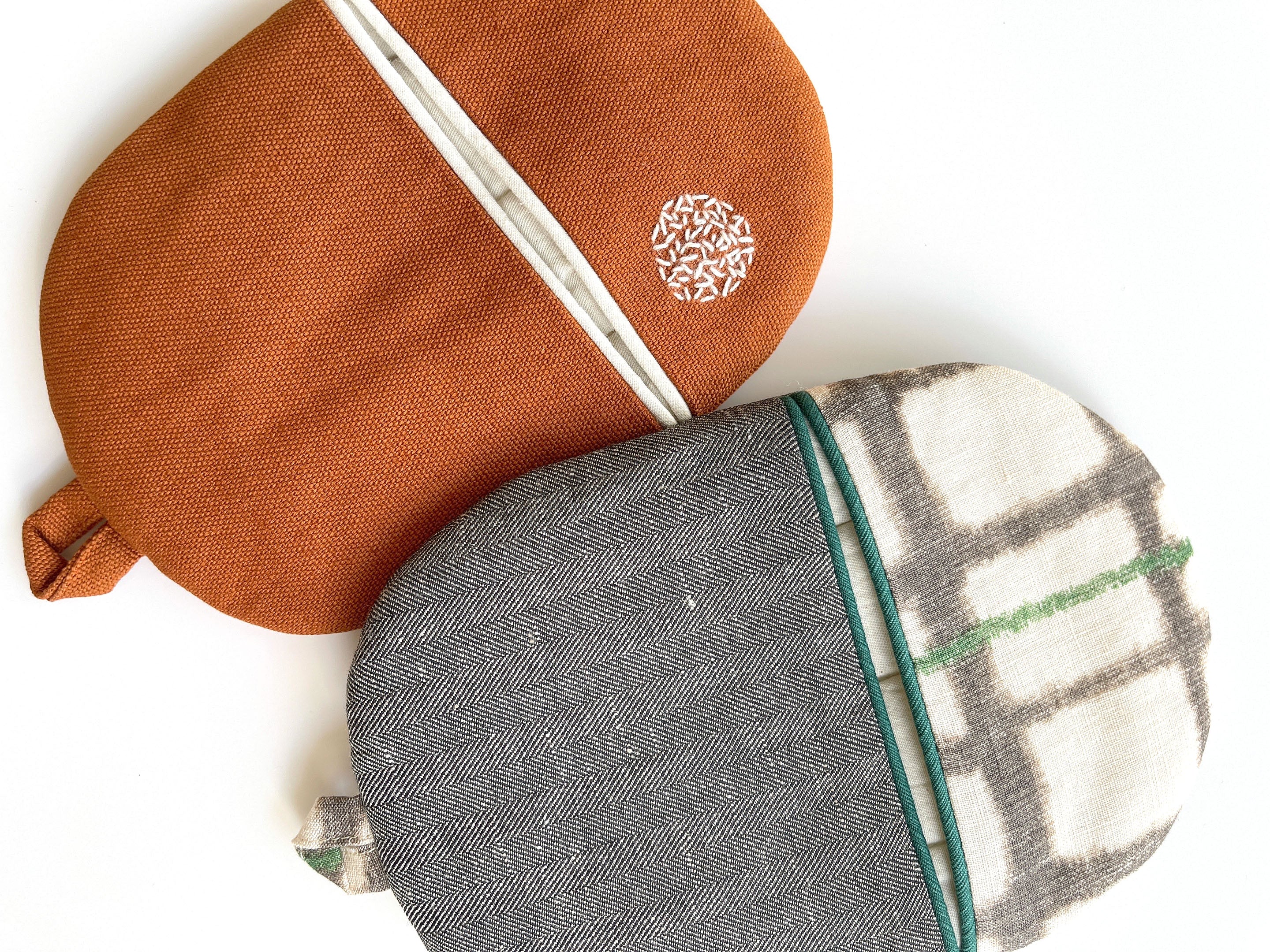 Handmade Linen Oven Mitts Set of 2 – Stylish Heat-Resistant Pot Holders