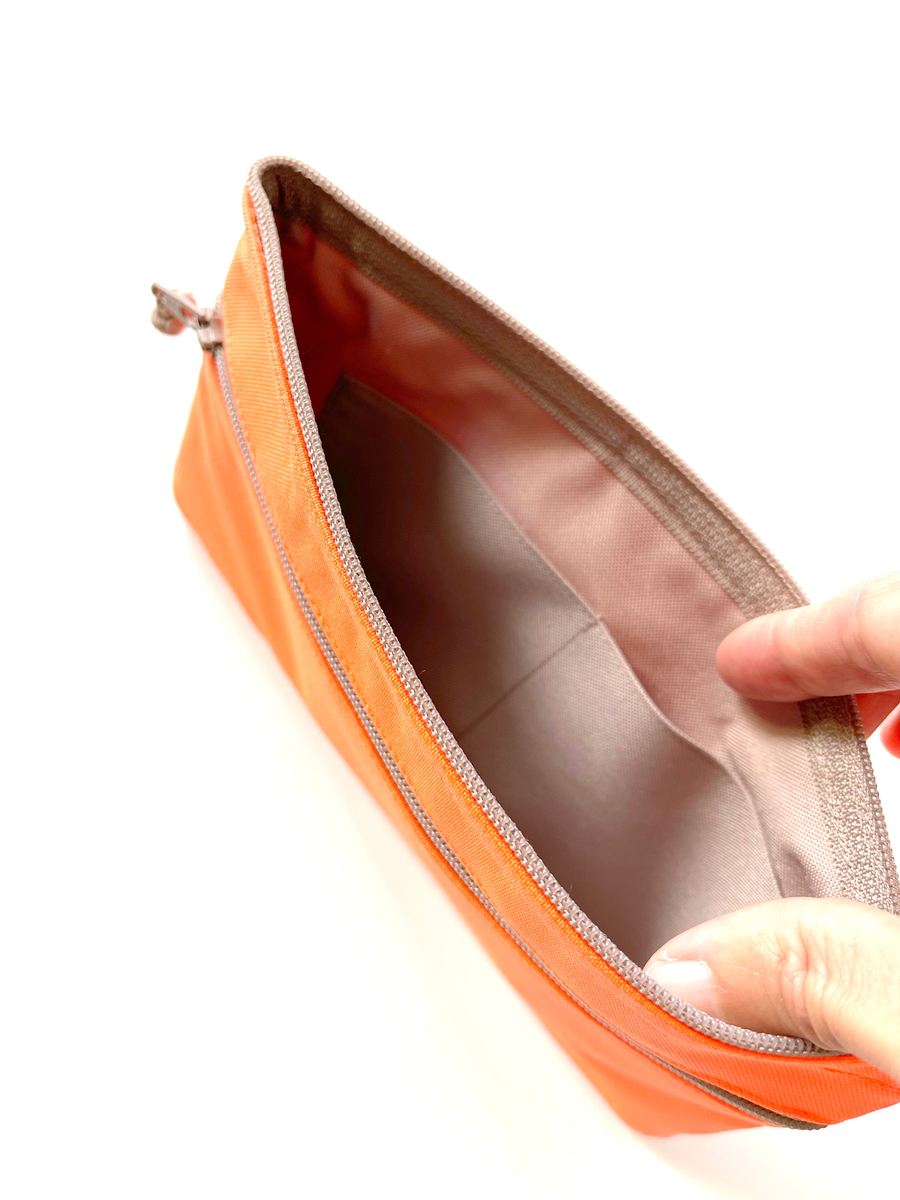 Our RPET collection includes a wide range of bags, purses and cases. We use the most traditional Chinese icon, 盘扣 (pronounced "pán kòu"), as a feature of the product. This small button, which was often seen in old China, has to be hand crafted by very experienced and skilled craftspeople. And, we apply 1mm piping sewing technique to trim the edge to give the product a neat shape while keeping it supported. In this collection you can also see how we like to play with a variety of vibrant colours and bring them into daily life.