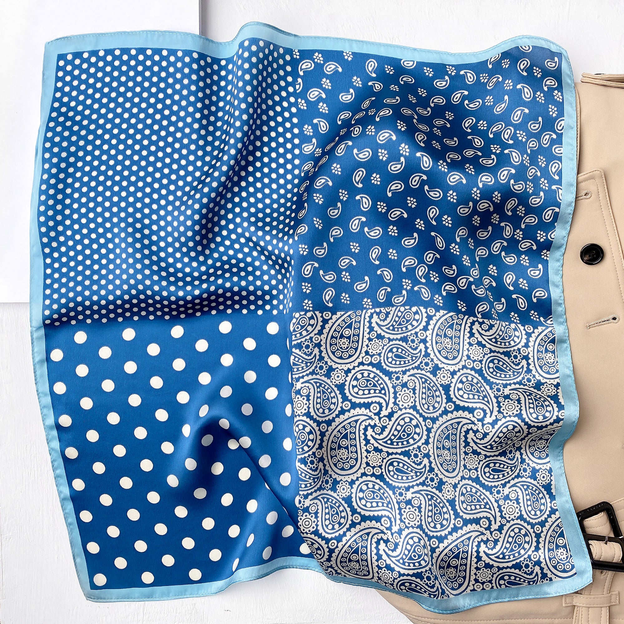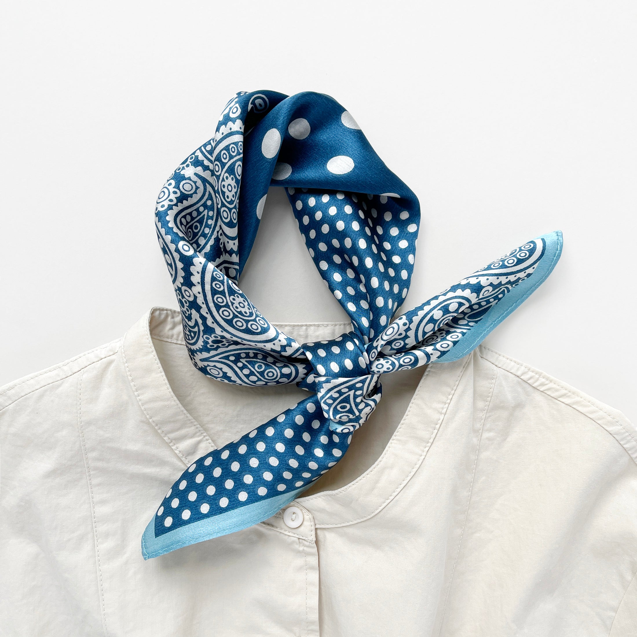 Classic Paisley Polka Dots Silk Scarf - 53cm Unisex Bandana