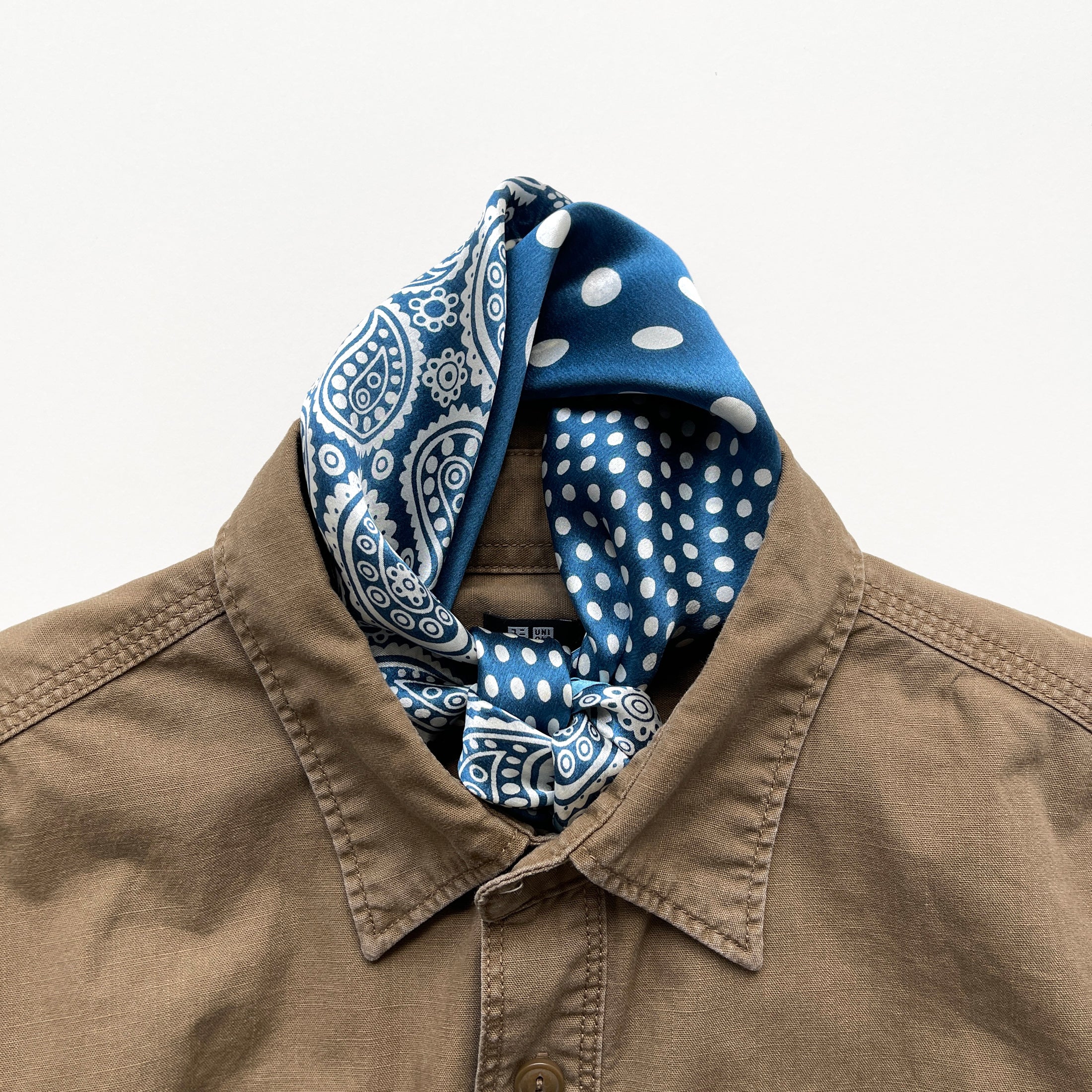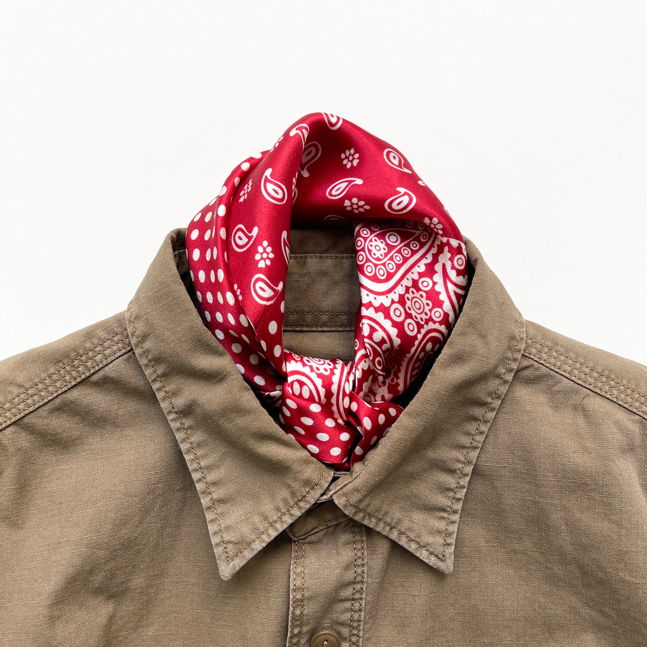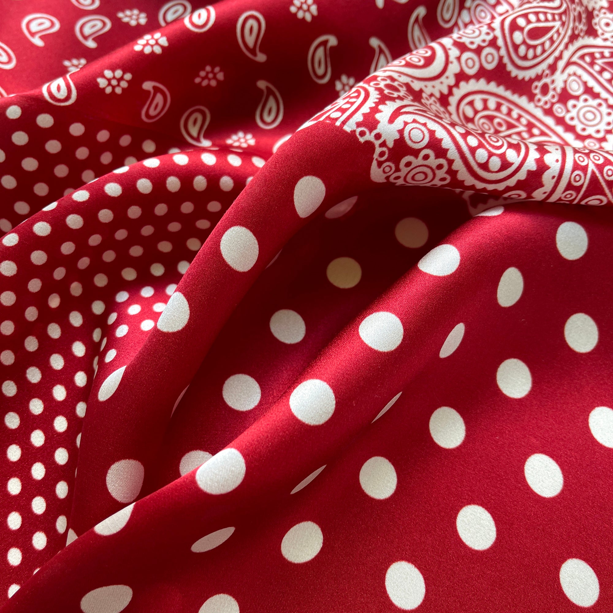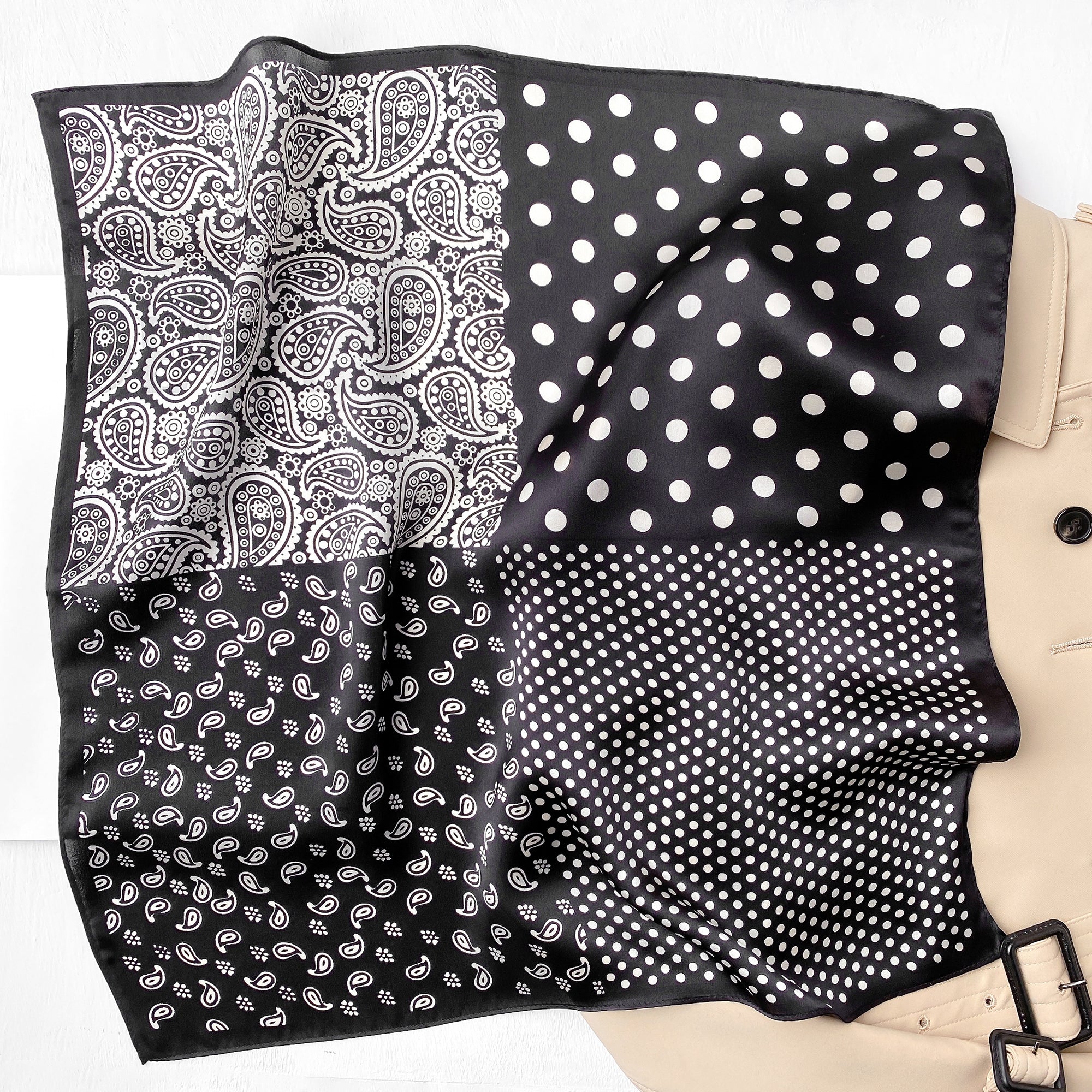 Elevate your style with our luxurious silk bandana scarf, featuring a captivating blend of boho chic paisley and timeless polka dot prints, designed to appeal to both women and men.