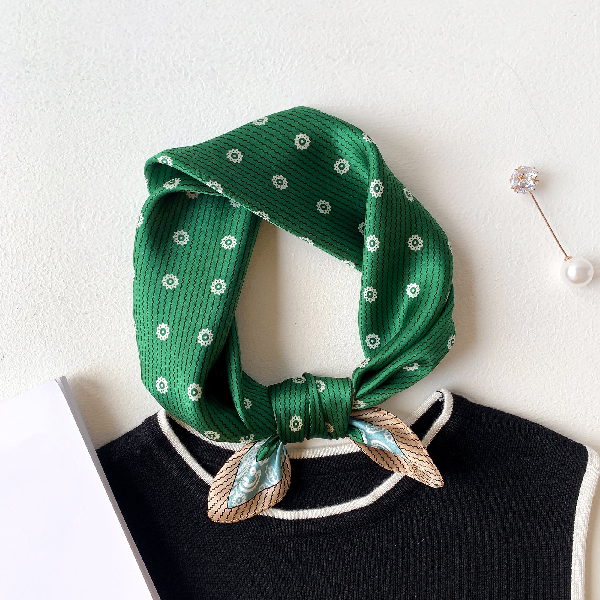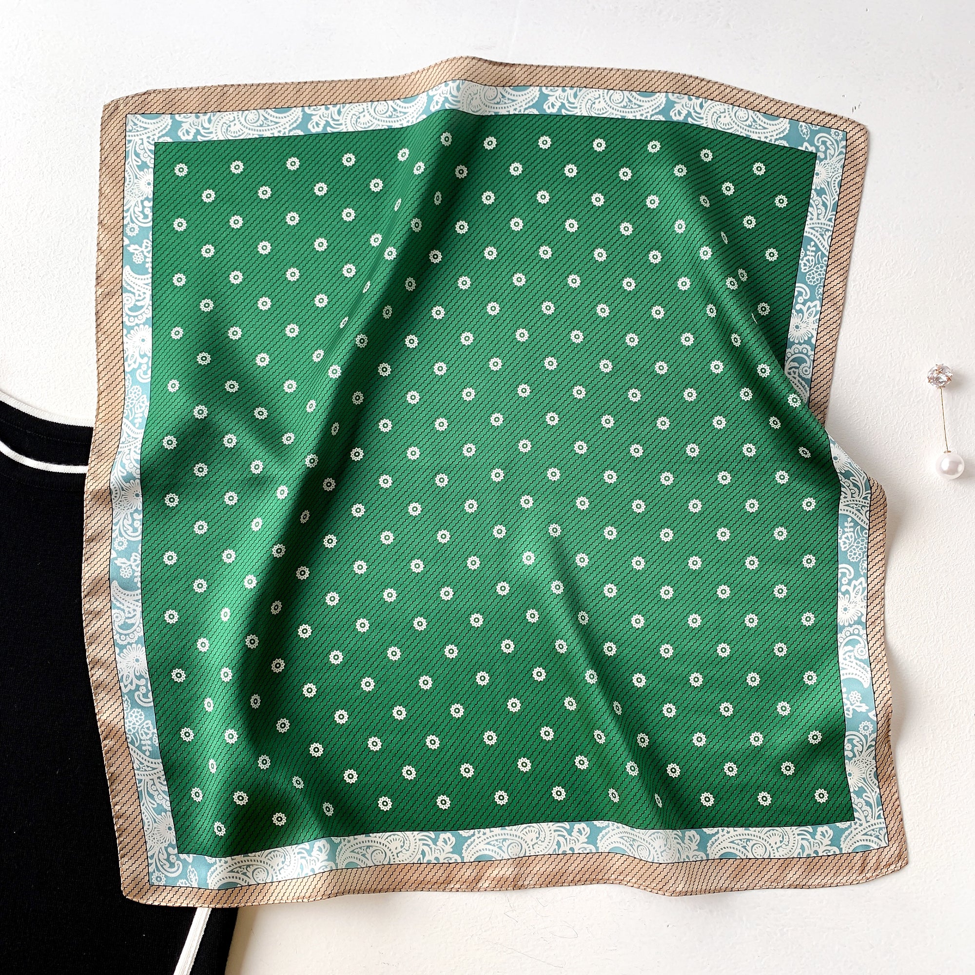 Elevate your everyday look with this silk bandana for women, featuring a beautifully simplified floral pattern. Available in burgundy and green, this lightweight silk accessory adds a touch of elegance and charm to any ensemble.