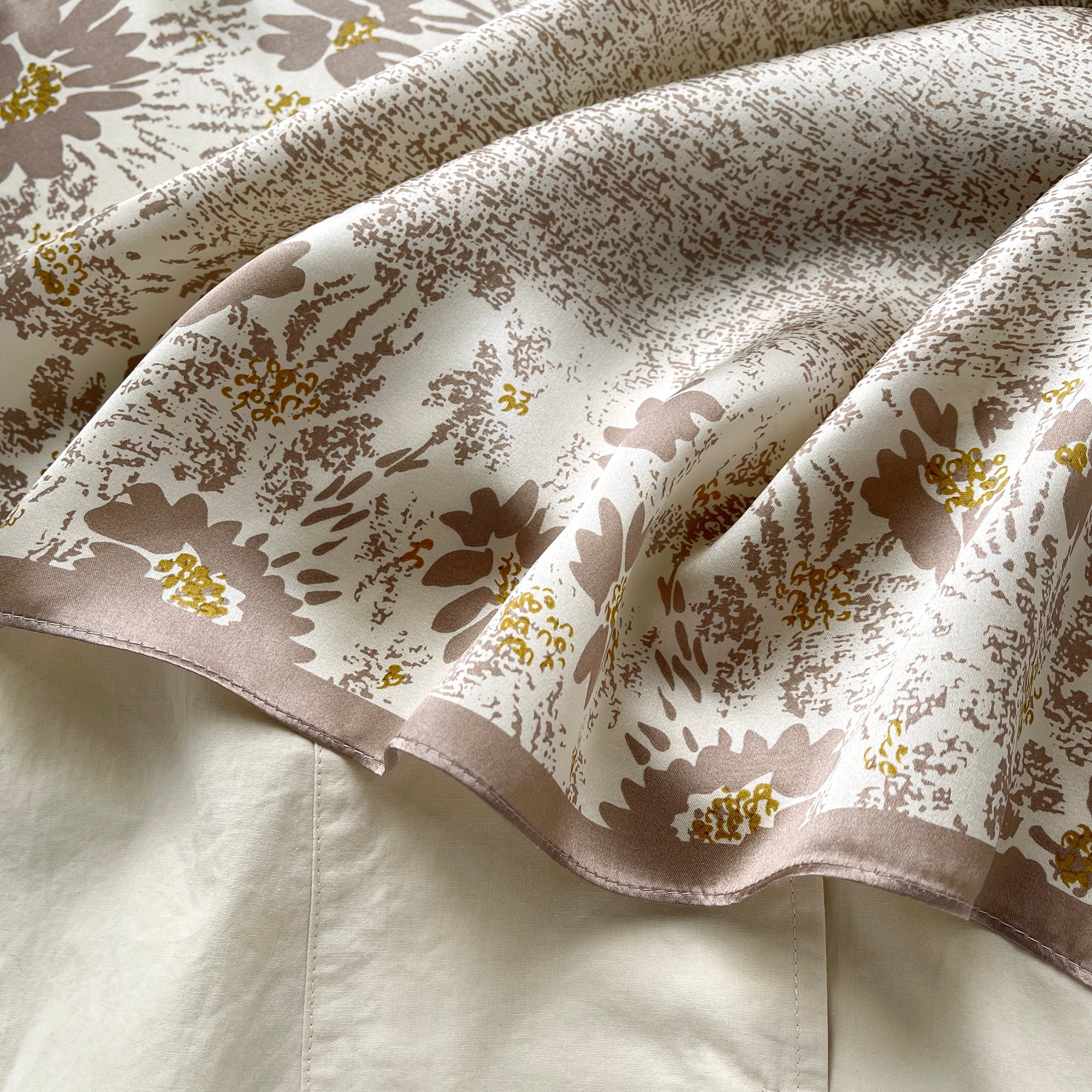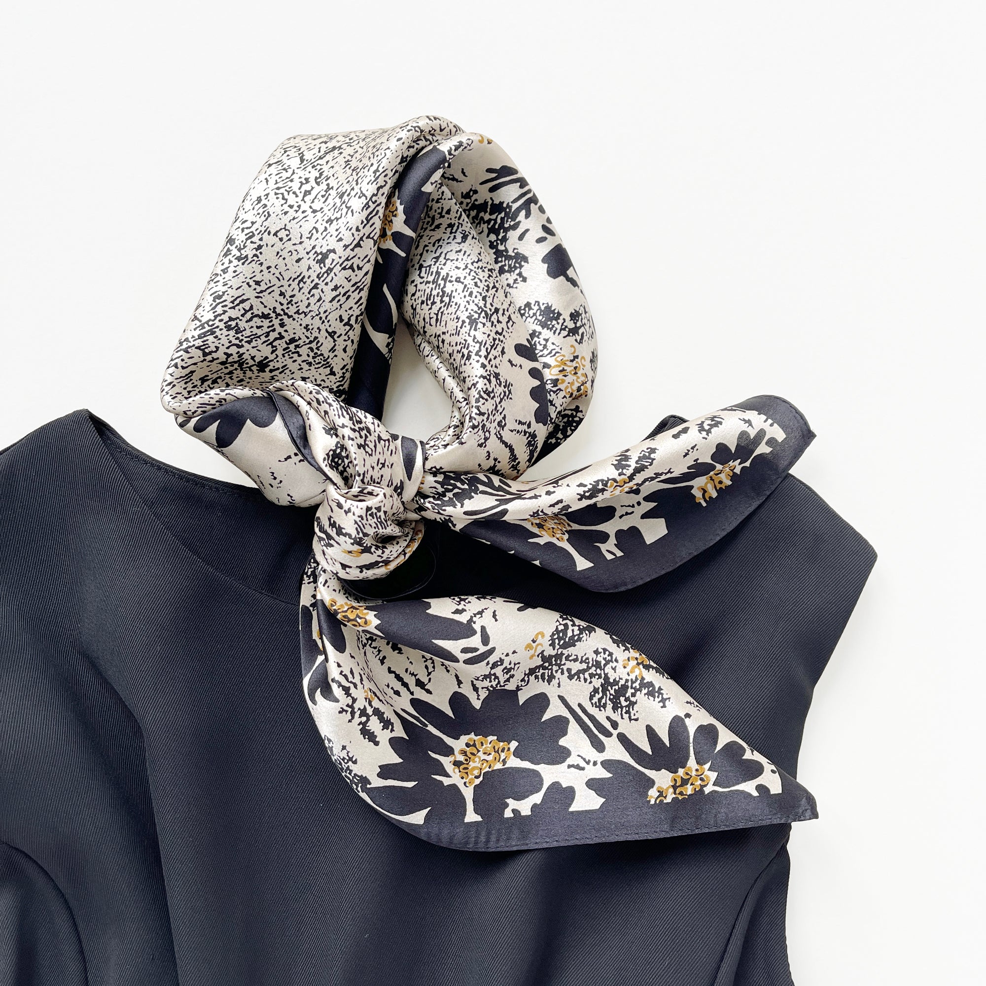 Elevate your wardrobe with our exquisite floral print silk scarf, designed exclusively for women who appreciate timeless elegance and sophisticated style. Available in two classic colours—beige and black—this luxurious accessory is a must-have addition to any fashion-forward ensemble.