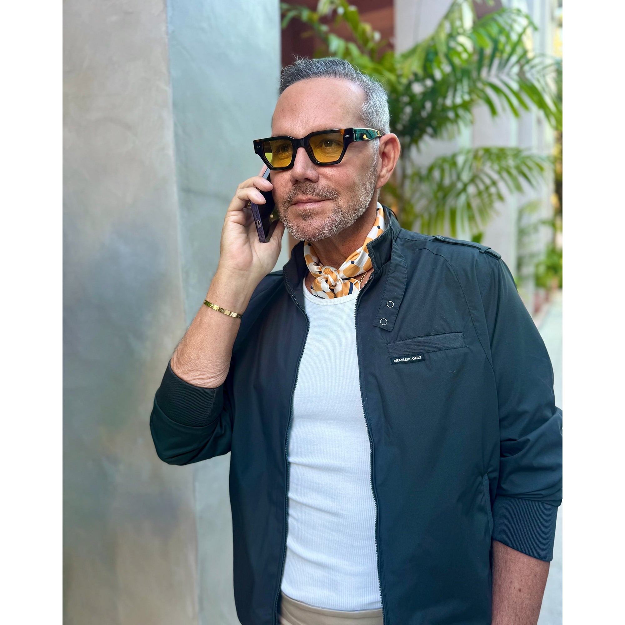 Designed to be worn by both women and men, this silk square works effortlessly around the neck, in the hair, or styled on a bag. A versatile piece that brings quiet character to everyday dressing — modern, graphic, and enduring.