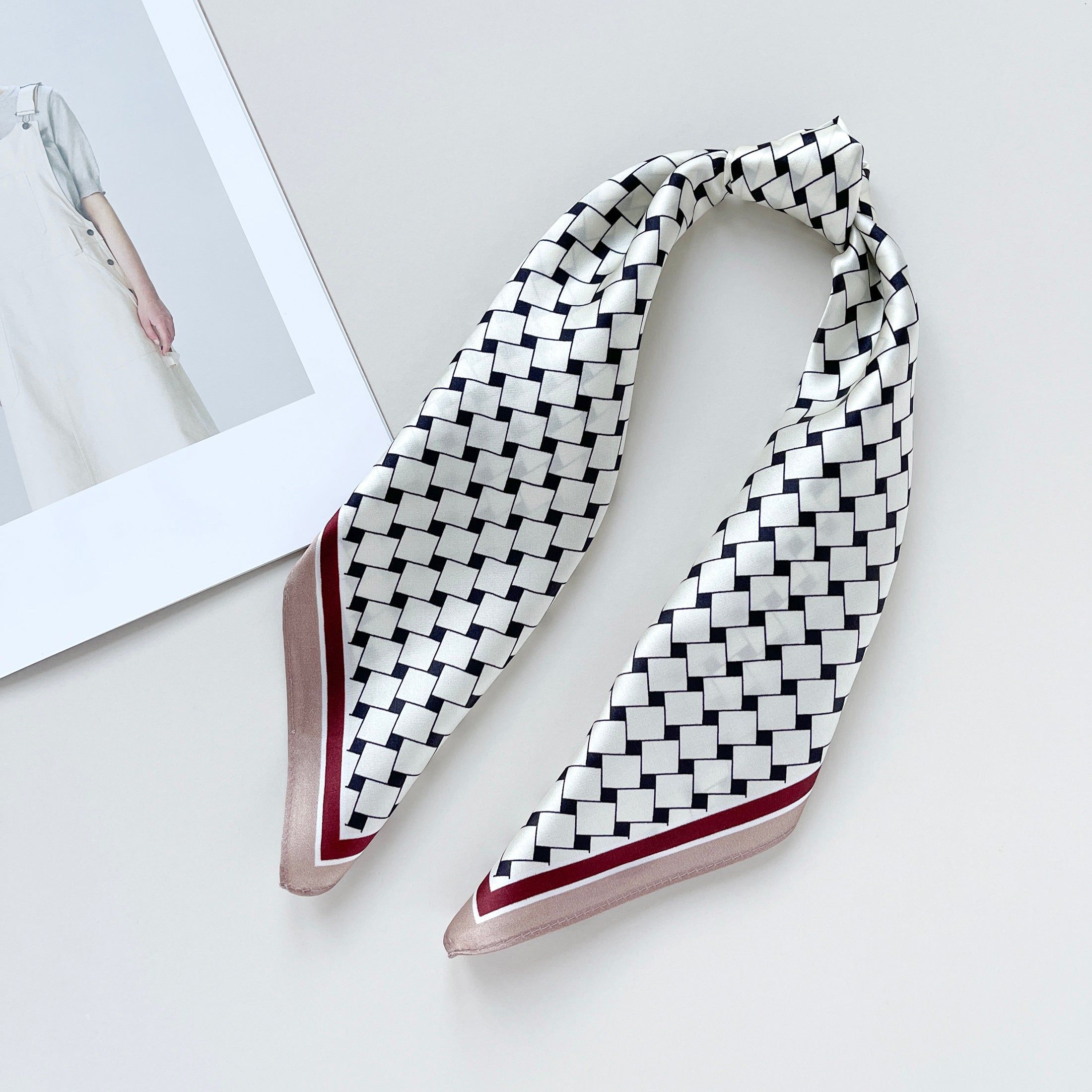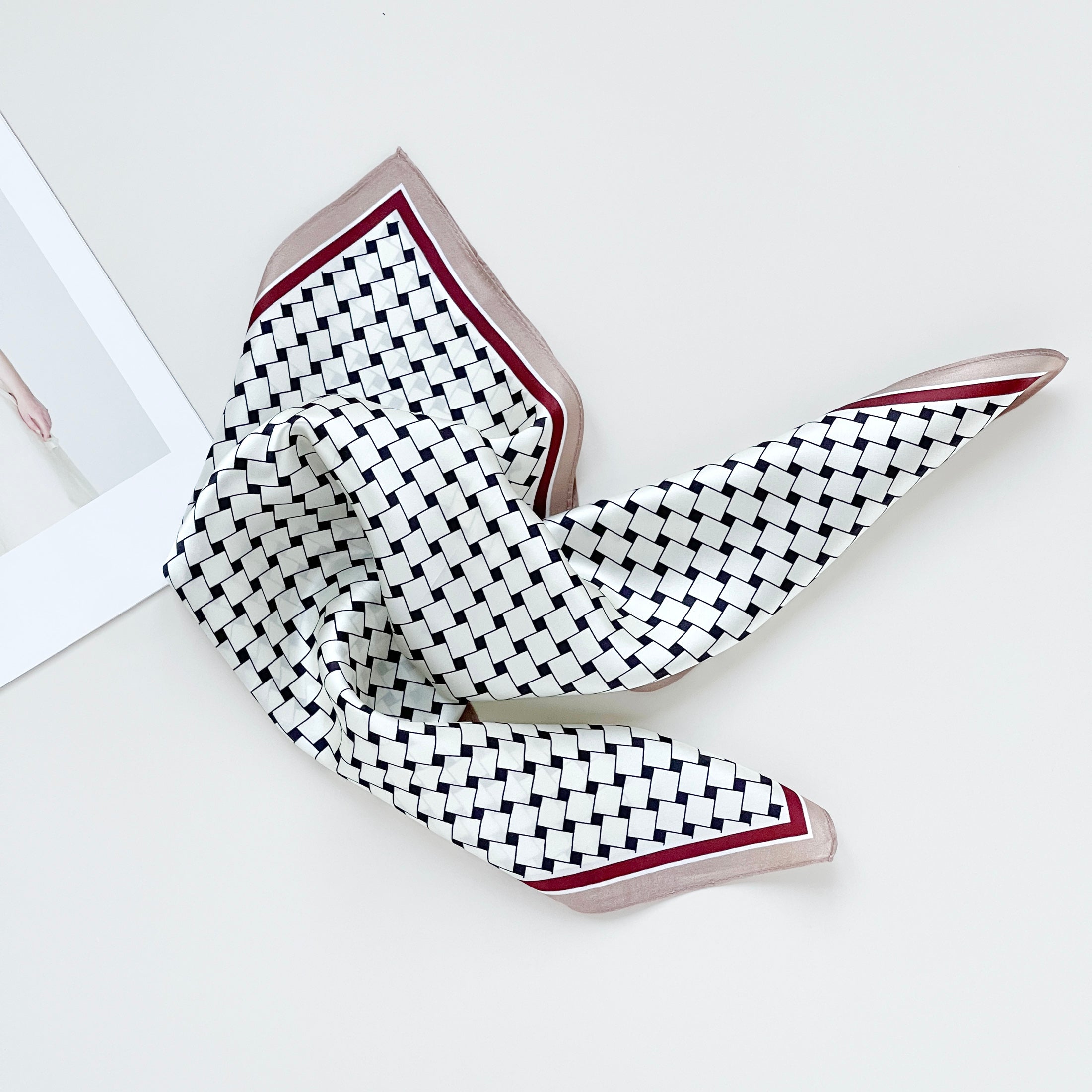 Geometric Grid Silk Scarf - 53cm Unisex Bandana
